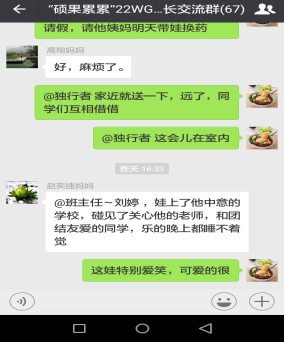 (圖為高壓電器系22WG發(fā)電廠及電力系統(tǒng)班班主任在家長(zhǎng)群和家長(zhǎng)的對(duì)話)