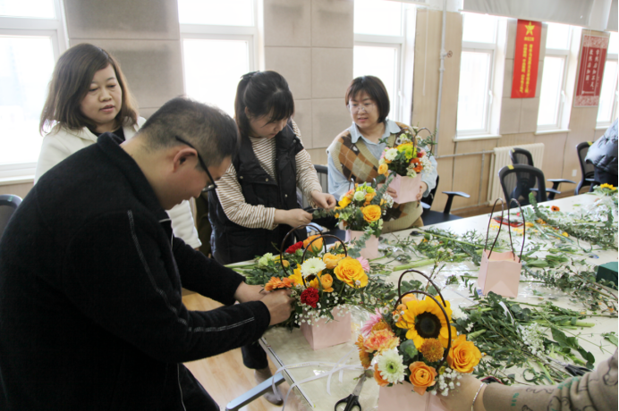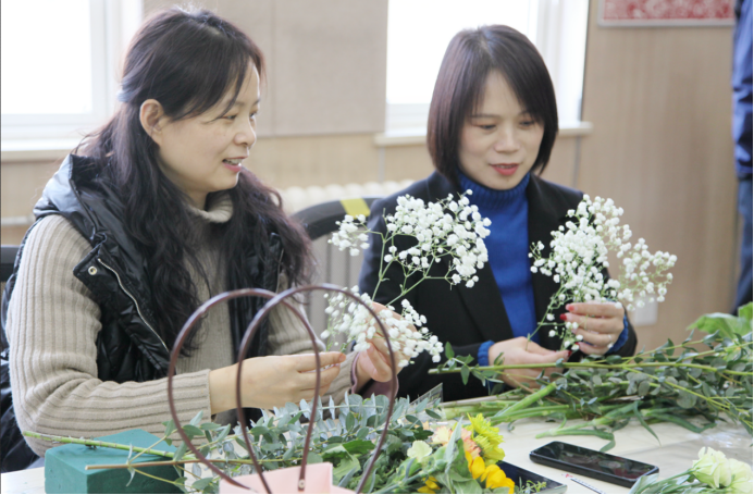 “學(xué)院工會今年‘三八’活動形式非常新穎,和同事們一起學(xué)習(xí)花藝,感覺在緊湊的教學(xué)工作中那份緊張的心情得到了放松,感覺很溫馨。”現(xiàn)代服務(wù)系教師常薇說。