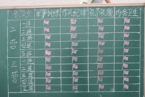 即便如此,仍有不如人意的地方:天公不愿作美,兩場(chǎng)暴雨將國(guó)旗下的營(yíng)連評(píng)比專欄洗刷干凈,和教官協(xié)商后,按其要求重新制作。為了融合90后新生的審美情緒,宣傳欄在設(shè)計(jì)之初就以漫畫(huà)作為主體,拒絕死板,貼近學(xué)生。同學(xué)們對(duì)軍訓(xùn)感想和日志的關(guān)注度很高,每天我們都對(duì)各系室報(bào)送的稿件進(jìn)行審稿和統(tǒng)計(jì),為優(yōu)秀學(xué)員和先進(jìn)集體的評(píng)比提供數(shù)據(jù),也為同學(xué)們創(chuàng)建一個(gè)展示自我的平臺(tái)。