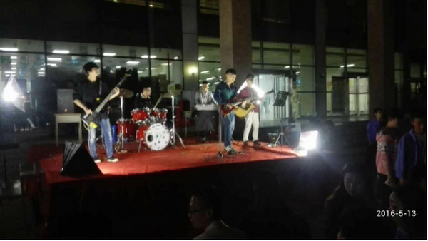 5月12日晚8:00,學院電聲樂團fly樂隊在文體中心門口獻上了一場精彩絕倫的校園演唱會。這也是樂隊成立以來,第二次專場演出。