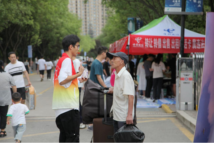 從學院大門到學生公寓樓,志愿者服務隊熱情幫助學子搬運行李,指引道路……