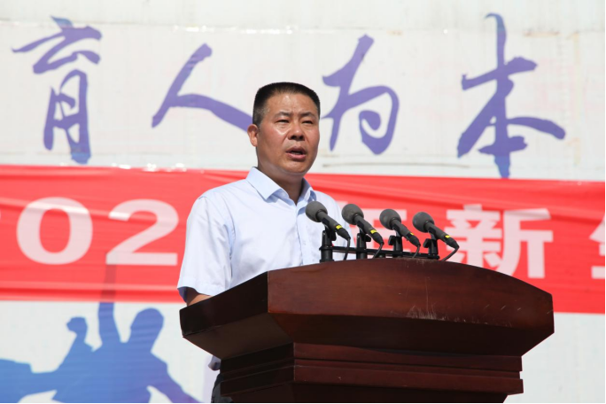 黨委副書記、紀(jì)委書記孫占亞向軍訓(xùn)團(tuán)贈(zèng)錦旗后發(fā)表了熱情洋溢的軍訓(xùn)工作總結(jié)暨開學(xué)典禮講話,他首先代表學(xué)校,向?yàn)檐娪?xùn)付出辛勤汗水的各位教官和班主任表示衷心的感謝!向順利完成軍訓(xùn)任務(wù)的全體同學(xué),表示熱烈的祝賀!并對(duì)同學(xué)們?cè)谲娪?xùn)中表現(xiàn)出的敢于吃苦、奮力拼搏的精神給予高度肯定。同時(shí)他還勉勵(lì)全體同學(xué)要將軍訓(xùn)成果轉(zhuǎn)化為學(xué)習(xí)的動(dòng)力,把軍訓(xùn)過(guò)程中練就的優(yōu)良作風(fēng)保持下去;把軍訓(xùn)期間養(yǎng)成的良好品質(zhì)和作風(fēng),帶到今后的生活、學(xué)習(xí)中去,一言一行都要高標(biāo)準(zhǔn)、嚴(yán)要求,遵守紀(jì)律,刻苦學(xué)習(xí),踏實(shí)做人,以優(yōu)異的成績(jī)回報(bào)老師、父母。
