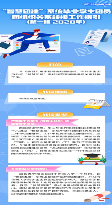 為順利推進“學社銜接”工作,自5月起,全團依托“智慧團建”系統(tǒng)開展2020年畢業(yè)學生團員團組織關系轉(zhuǎn)接工作,直觀圖解來了!
