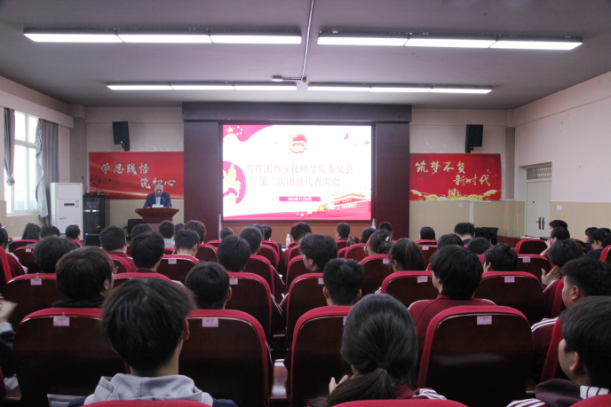 高舉旗幟跟黨走,挺膺擔(dān)當(dāng)建新功。11月8日,共青團(tuán)西安技師學(xué)院委員會(huì)第二次代表大會(huì)在學(xué)院C座302會(huì)議室召開(kāi)。學(xué)院黨委副書(shū)記、紀(jì)委書(shū)記程智平,院長(zhǎng)助理、黨群紀(jì)檢處處長(zhǎng)姚永樂(lè),學(xué)生管理服務(wù)中心及各教學(xué)系負(fù)責(zé)人受邀參加本次大會(huì)。大會(huì)應(yīng)到團(tuán)員代表100名,實(shí)際到會(huì)團(tuán)員代表99名。