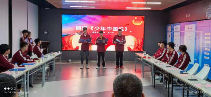 交流會(huì)上,24WG機(jī)電一班團(tuán)支部書記吉翔同學(xué)以互問互答的方式向大家提出黨史小問題,同學(xué)們進(jìn)行搶答,共同學(xué)習(xí)黨史知識(shí);史念同學(xué)向大家分享了她參觀八路軍西安辦事處紀(jì)念館的感想心得;最后,全體團(tuán)員進(jìn)行了文藝表演。高云普、白巖松和李南杰三位同學(xué)為大家?guī)砝收b《祖國(guó)啊,我親愛的祖國(guó)》;尚孝中、宋星宇、李彥錫、李睿琦和武旭同學(xué)表演合唱 《團(tuán)結(jié)就是力量》;常嘉碩、楊云霄同學(xué)帶來吉他彈唱《稻香》;吉翔、李嘉亮和黃一然同學(xué)帶來朗誦《少年中國(guó)說》;王智斌、張博表演了相聲《你好,黨》。