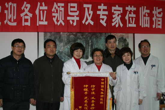 2010年1月20日,學(xué)院黨委副書(shū)記紀(jì)委書(shū)記袁建章、副院長(zhǎng)賀惠民、院辦主任姚永樂(lè)一行前往西電集團(tuán)醫(yī)院,向該院送上一面寫(xiě)有“防甲流義務(wù)出診獻(xiàn)愛(ài)心,伸援手兄弟友誼傳西電”的錦旗,對(duì)西電集團(tuán)醫(yī)院在甲流期間抽調(diào)三名醫(yī)務(wù)骨干派駐學(xué)院咸陽(yáng)校區(qū)負(fù)責(zé)師生日常接診工作的舉措表示由衷的感謝。
