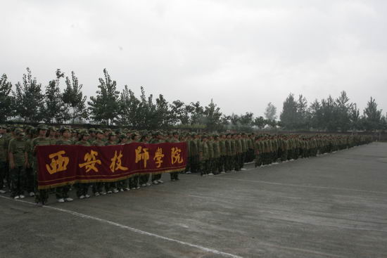2009年8月29日,我院組織2012屆學(xué)生在藍(lán)田軍訓(xùn)基地舉行了一場軍訓(xùn)匯報(bào)表演暨開學(xué)典禮。