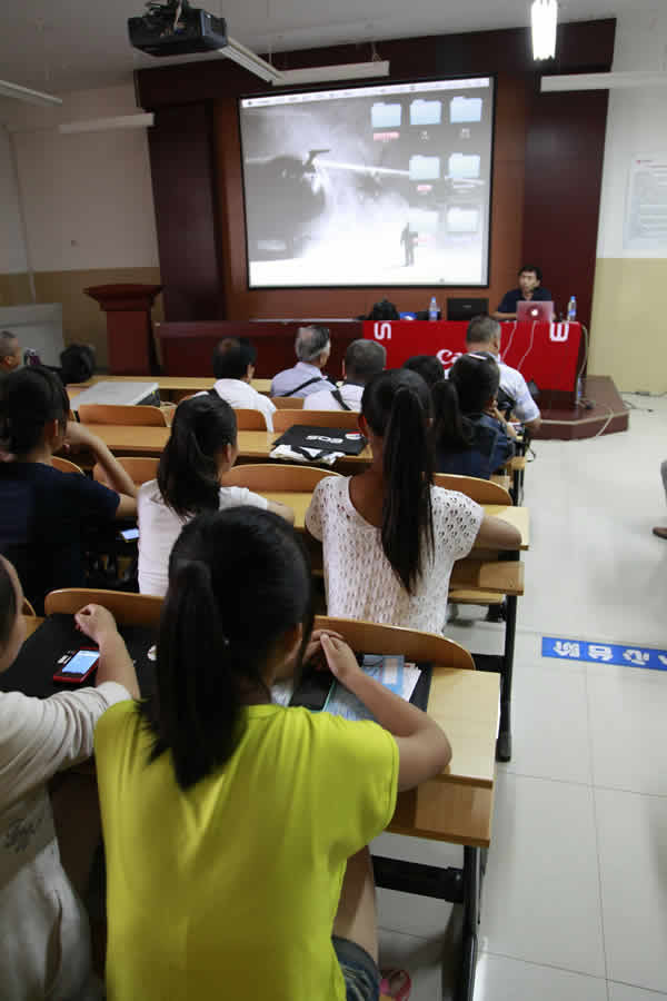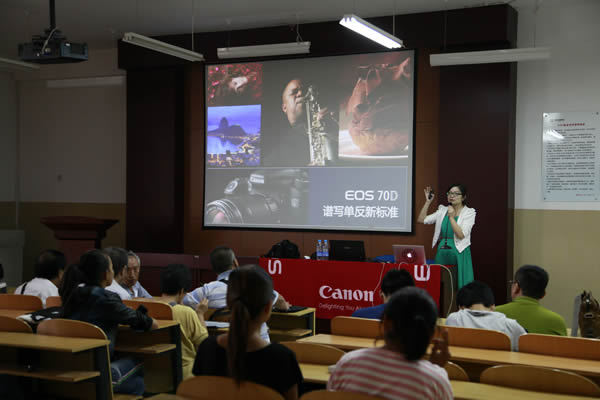 北京著名人像攝影師王小寧,結(jié)合佳能相機(jī)的特點,介紹了使用技巧與方法、閃光燈多角度運用、頻閃、多重曝光的技術(shù),并就人像攝影的構(gòu)圖談了專業(yè)攝影師的拍攝、處理方法,與大家交流分享?;顒又?,王小寧、陸健安還為多媒體學(xué)生和攝影愛好者抽取一、二、三等獎,并為他們頒獎。先后有7名攝影愛好者分別獲得佳能公司的紀(jì)念品。