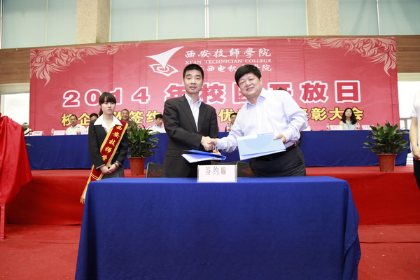 參加本次簽約活動(dòng)的有陜西省人力資源和社會(huì)保障廳副廳長(zhǎng)雷寶岐、陜西省人力資源和社會(huì)保障廳職業(yè)能力建設(shè)處處長(zhǎng)李西安、陜西省勞動(dòng)就業(yè)服務(wù)局局長(zhǎng)張延成、中國(guó)西電集團(tuán)公司人力資源總部副部長(zhǎng)郭棟、陜西省電梯行業(yè)協(xié)會(huì)會(huì)長(zhǎng)金寶、秘書長(zhǎng)康威、西安騰潤(rùn)實(shí)業(yè)有限公司總經(jīng)理董學(xué)宏,學(xué)院院長(zhǎng)李長(zhǎng)江、副院長(zhǎng)王德意、副院長(zhǎng)袁建章、院長(zhǎng)助理兼項(xiàng)目開發(fā)處處長(zhǎng)馮小平、院長(zhǎng)助理兼西安豪特電力開關(guān)制造有限公司總經(jīng)理李秀梅參加了儀式。