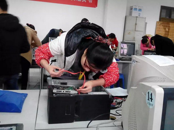 圖為李佳老師在比賽中進(jìn)行計(jì)算機(jī)組裝