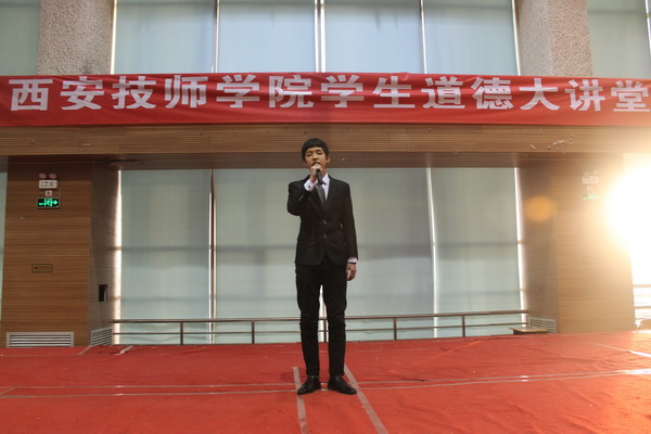 2015年12月15日下午3點(diǎn)45分,西安技師學(xué)院學(xué)生“道德講堂”活動(dòng)在文體中心二樓隆重舉行,本次活動(dòng)由學(xué)生工作處主辦,主題是“做一個(gè)有道德的人”。各系主任、全體學(xué)管老師、班主任以及各系學(xué)生代表共1200余人到場(chǎng)參加了活動(dòng)。