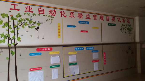 為進一步提高教學管理水平和質(zhì)量,積極響應(yīng)“兩會”中提質(zhì)增效的號召,工業(yè)自動化系自開學以來,始終堅持精益改善,設(shè)計并完成了工業(yè)自動化精益管理目視化看板,并于2016年3月投入使用。