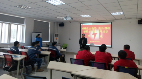 2017年11月25日,由高壓電器培訓(xùn)中心承辦的GIS組合電器、變壓器檢修維護(hù)技能提升專項(xiàng)培訓(xùn)班圓滿結(jié)束了。下午16:00在新校區(qū)D座206培訓(xùn)教室舉行了結(jié)班儀式。在結(jié)班儀式上,高壓電器培訓(xùn)中心副主任姚永樂(lè)做了培訓(xùn)總結(jié)并鼓勵(lì)學(xué)員們?cè)诮窈蟮墓ぷ髦胁粩嚆@研進(jìn)取、開拓創(chuàng)新。