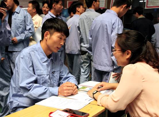 上午10點(diǎn),在學(xué)院負(fù)責(zé)就業(yè)的老師和班主任的組織下,19屆畢業(yè)生統(tǒng)一著實(shí)習(xí)工裝進(jìn)入會(huì)場(chǎng)。同學(xué)們手持精心準(zhǔn)備的簡(jiǎn)歷,充滿自信的來到心儀的用工企業(yè)前,與企業(yè)工作人員進(jìn)行交流,主動(dòng)介紹個(gè)人情況并了解企業(yè)相關(guān)信息。各企業(yè)代表也對(duì)學(xué)院畢業(yè)生整體精神面貌表示滿意,認(rèn)真解答同學(xué)們的疑問,招聘會(huì)現(xiàn)場(chǎng)氣氛異常熱烈。一家物業(yè)公司負(fù)責(zé)招聘的工作人員表示:“我們很歡迎咱們學(xué)校這種既有大專學(xué)歷又有高級(jí)工職業(yè)資格的高技能人才加入公司,因?yàn)樗麄冊(cè)谛F陂g通過“工學(xué)交替”的教學(xué)模式,已經(jīng)對(duì)企業(yè)和崗位有了初步認(rèn)識(shí),相信進(jìn)入單位后可以很快適應(yīng),這對(duì)企業(yè)來說是非常重要的”。