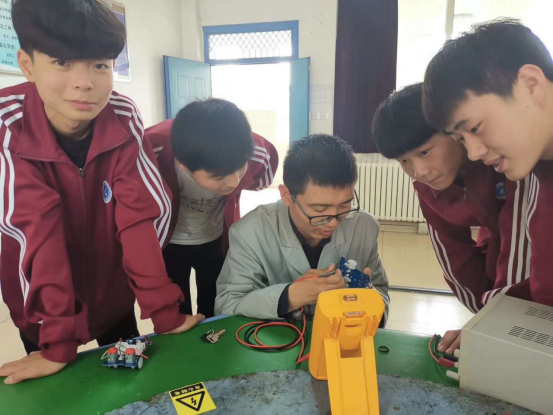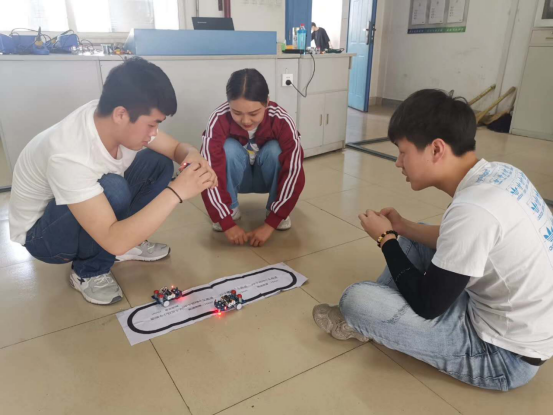 王耀龍老師指導(dǎo)學(xué)生調(diào)試巡跡小車