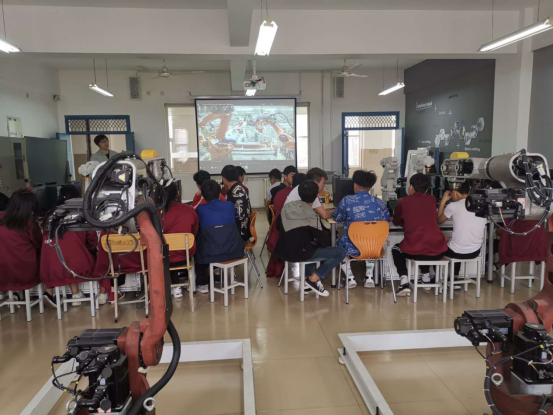 本次體驗(yàn)課共安排了電子創(chuàng)意制作、工業(yè)機(jī)器人技術(shù)、單片機(jī)技術(shù)、工業(yè)控制技術(shù)四個(gè)體驗(yàn)項(xiàng)目,在循跡小車的裝調(diào)、工業(yè)機(jī)器人操作、跳舞機(jī)器人操作及流水燈的PLC編程學(xué)習(xí)中,通過實(shí)操演練、比賽互動(dòng)和總結(jié)分享等學(xué)習(xí)過程,加深學(xué)生對機(jī)電專業(yè)的了解,激發(fā)學(xué)生的學(xué)習(xí)興趣。