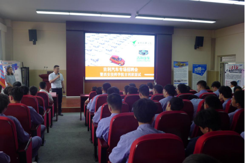 在吉利汽車專場招聘會上,來自浙江吉利汽車銷售公司的張曉薇女士簡要介紹了吉利汽車的發(fā)展歷程、品牌架構(gòu)、公司經(jīng)營以及企業(yè)文化等基本情況,使同學們對吉利汽車有了更深層次的認識。然后,來自吉利汽車旗下的各服務(wù)站負責人為同學們分別介紹企業(yè)管理和相關(guān)待遇等具體情況,同學們積極響應(yīng)踴躍報名。