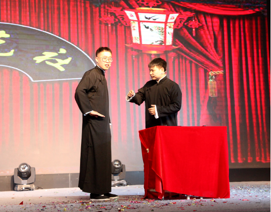 本次聯(lián)歡晚會(huì)主題為“匠心流芳 追夢(mèng)青春”,共有合唱、小品、現(xiàn)代舞、民族舞、相聲、電聲表演、跆拳道表演、獨(dú)唱等十余種不同風(fēng)格類(lèi)型的表演節(jié)目。聯(lián)歡會(huì)在21G學(xué)前班帶來(lái)的舞蹈《擁抱新時(shí)代》中拉開(kāi)序幕,來(lái)自學(xué)院辦公室的李能靚老師,配合著一排排機(jī)器人共同起舞,現(xiàn)代感和科技感十足;電氣技術(shù)系師生表演的合唱《明天會(huì)更好》,向大家傳遞了美好的祝福與希望;學(xué)生社團(tuán)曲藝社用幽默的語(yǔ)言和精湛的表演功底,精彩演繹了小品《上課請(qǐng)聽(tīng)話(huà)》和相聲《三娘教子》;跆拳道社團(tuán)表演的跆拳道動(dòng)作干凈利落,氣勢(shì)沉著冷靜;現(xiàn)代服務(wù)系學(xué)前教育專(zhuān)業(yè)學(xué)生帶來(lái)的一系列舞蹈表演,既向大家展示了她們?cè)鷮?shí)的專(zhuān)業(yè)技能,也展示了舞蹈獨(dú)特的魅力;機(jī)電技術(shù)系教師代表帶來(lái)的《爆笑課堂》更是燃爆全場(chǎng),將聯(lián)誼會(huì)氣氛推向高潮;現(xiàn)代服務(wù)系劉芳老師的《我和我的祖國(guó)》,唱出了對(duì)偉大祖國(guó)的真誠(chéng)愛(ài)意和濃濃深情;精彩的節(jié)目不斷呈現(xiàn),現(xiàn)場(chǎng)歡呼聲、掌聲此起彼伏?,F(xiàn)場(chǎng)互動(dòng)抽獎(jiǎng)環(huán)節(jié),更是讓聯(lián)歡會(huì)增添了幾分熱鬧和喜慶。經(jīng)過(guò)2個(gè)多小時(shí)的精彩表演,聯(lián)歡會(huì)在學(xué)前班學(xué)生帶來(lái)的大合唱《我喜歡》中落下帷幕。