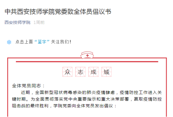 全員參與,確保實效。學(xué)院各部門緊密配合,共同做好防疫工作。后勤管理服務(wù)中心第一時間擬定防控應(yīng)急預(yù)案,采購所需防疫物資,組織人員對校園各區(qū)域進行全面清理消毒;學(xué)生管理服務(wù)中心保衛(wèi)科加強校園防疫巡查,禁止校外人員進入學(xué)校,對校內(nèi)人員進出進行嚴格登記和體溫檢測;各部門通過工作群、家長群、班級群等方式開展健康教育,向全體師生和家長宣傳普及疫情防治知識和防控要點,指導(dǎo)師生和家長居家外出時做好防控,盡量減少前往通風(fēng)不暢和人流密集場所;黨群紀檢處通過微信公眾號、校園網(wǎng)等途徑及時向師生宣傳中央決策部署、疫情防控知識、《西安技師學(xué)院防控新型冠狀病毒肺炎疫情致全體師生及家長的倡議書》、《西安技師學(xué)院黨委致全體黨員倡議書》等,做到人人知曉,提高師生健康意識和自我保護能力;教務(wù)處及學(xué)生管理服務(wù)中心按照要求發(fā)布延期開學(xué)通知,組織各系做好推遲開學(xué)的各項準備工作,保證停課不停學(xué)。