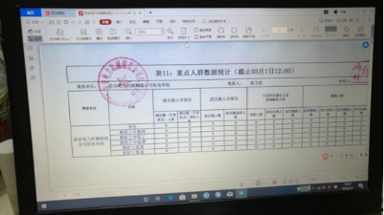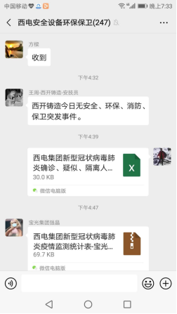 為了做好疫情日?qǐng)?bào)信息統(tǒng)計(jì)工作,陳衛(wèi)茹老師在防疫小組領(lǐng)導(dǎo)的指導(dǎo)下,在各部門的大力支持與配合下,帶著患病未愈的身體,進(jìn)入了緊張的工作狀態(tài)。每天按時(shí)通過(guò)網(wǎng)絡(luò)和各種微信工作群收集信息后,填寫陜西教育系統(tǒng)新型冠狀病毒感染的肺炎疫情防控工作日?qǐng)?bào)臺(tái)賬、武漢來(lái)(返)人員健康情況登記表、(疑似/確診)個(gè)體病例明細(xì)情況表、重點(diǎn)人群數(shù)據(jù)統(tǒng)計(jì)表、西電集團(tuán)新型冠狀病毒肺炎確診、疑似、隔離人員統(tǒng)計(jì)表等各類數(shù)據(jù)報(bào)表,然后上報(bào)至省人社廳、省教育廳、市人社局、西電集團(tuán)的相關(guān)部門及領(lǐng)導(dǎo)。