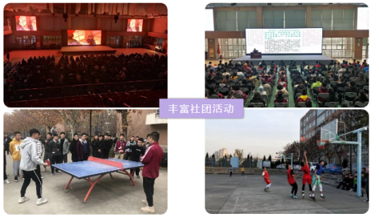 學校具有多個類型豐富的社團供同學們選擇。充分發(fā)揮學生社團在學校第二課堂體系建設和提高學生綜合素質方面的主力軍作用。