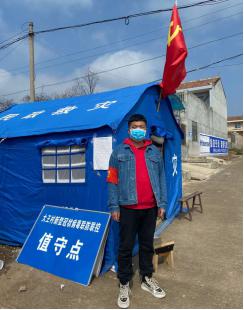 這里沒有溫暖的空調(diào),沒有柔軟的沙發(fā),沒有噴香的美酒佳肴,每天要做的是頂著凌冽的寒風(fēng),不分白天黑夜的執(zhí)勤巡邏,幫助病人測(cè)量體溫、幫病人和醫(yī)護(hù)人員運(yùn)送物資、送飯等,有時(shí)還要面對(duì)起初部分居民的不理解而開展政策和知識(shí)宣傳,但我們覺得很充實(shí),因?yàn)槲覀冇袃r(jià)值。像我們這樣的同學(xué)還有很多……