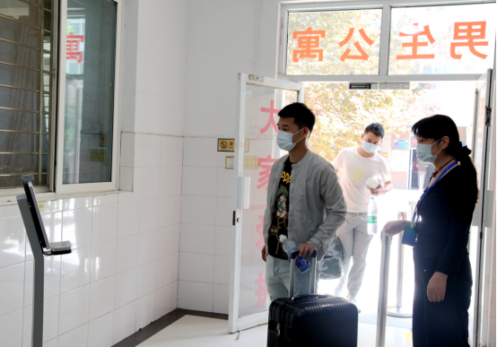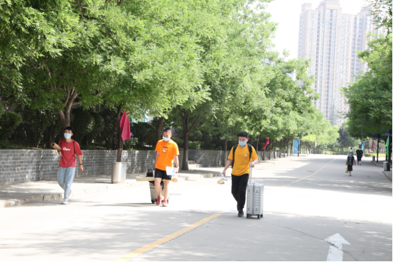 為了保證學(xué)生安全有序進(jìn)入學(xué)校,學(xué)院嚴(yán)格執(zhí)行復(fù)學(xué)方案,在大門口安排各系學(xué)管、班主任設(shè)置接待點(diǎn)。家長(zhǎng)送學(xué)生到學(xué)院大門口,行李消殺后,由負(fù)責(zé)老師接返校學(xué)生進(jìn)入返校通道?,F(xiàn)場(chǎng)學(xué)生按照要求間隔1米,領(lǐng)取學(xué)院發(fā)放的防疫口罩、防疫指南,配合安保及防疫人員做好身份核驗(yàn)、體溫檢測(cè)、攜帶物品消毒等環(huán)節(jié)后,由志愿者學(xué)生協(xié)助返校同學(xué)直接將行李運(yùn)送至宿舍。