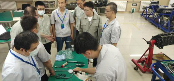 《發(fā)動(dòng)機(jī)拆裝檢測(cè)》按照世賽選拔賽的標(biāo)準(zhǔn),由陜西省教學(xué)能手、世賽選拔賽裁判孫博老師主講,從工量具的準(zhǔn)備、現(xiàn)場(chǎng)的整理以及標(biāo)準(zhǔn)的拆裝流程和測(cè)量步驟,進(jìn)行了嚴(yán)格的培訓(xùn)和考核。