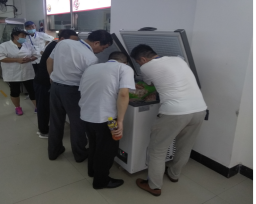 范孝紅院長、馮小平副院長、張大寧院長助理在食堂二樓主食材庫檢查