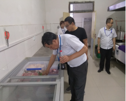 羅文科副書記在食堂檢查肉制品及冷藏食品