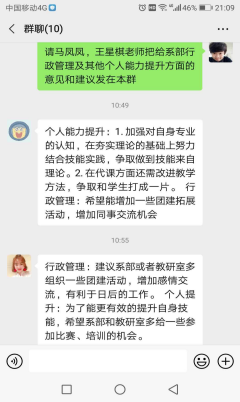 在述職答辯過程中,根據(jù)答辯安排及要求,全體教師高度重視,充分準(zhǔn)備,采用現(xiàn)場答辯和線上視頻答辯的形式,各位教師從個(gè)人能力提升和對系部行政管理的意見和建議兩方面進(jìn)行了闡述,提出建設(shè)性的意見。答辯小組成員認(rèn)真記錄,及時(shí)溝通,商談注意事項(xiàng)及改進(jìn)措施。嚴(yán)肅的提問、幽默的解答、積極的討論,使得此次述職答辯張弛有度、有序開展。