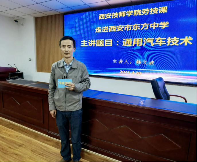 4月20日,西安技師學(xué)院將《汽車通用技術(shù)》帶到了西安市東方中學(xué)的初二課堂,為同學(xué)們普及了汽車技術(shù)和安全知識,受到了東方中學(xué)全校師生的熱情歡迎。身為西安技師學(xué)院汽車專業(yè)的高級技師和學(xué)科帶頭人,韓文波老師向?qū)W生們講述了世界技能大賽舞臺上的中國榜樣,用一個(gè)個(gè)鮮活例子告訴師生什么是大國工匠,什么是工匠精神。臺下一張張聚精會神聆聽的臉龐,讓我們強(qiáng)烈地感受到每一位“東方學(xué)子”的民族自豪感。