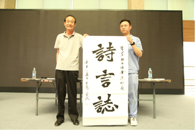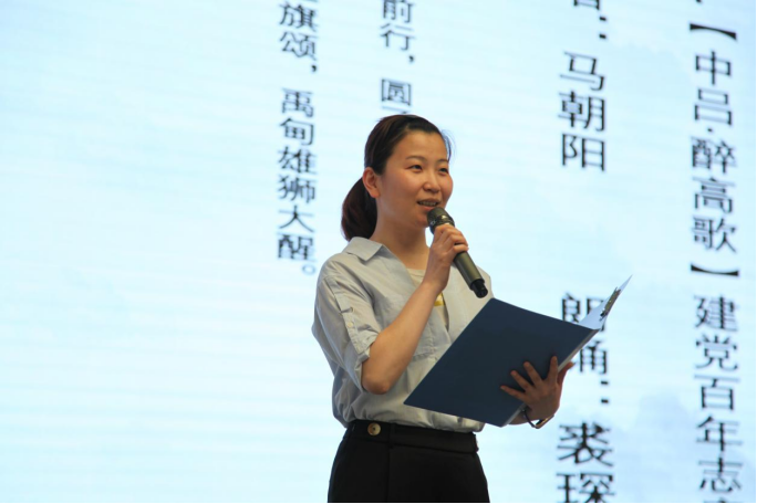 下午,學(xué)會(huì)一行人員、學(xué)院相關(guān)領(lǐng)導(dǎo)、老師及書(shū)法社成員、各系詩(shī)詞書(shū)法愛(ài)好者及學(xué)生代表共二百余人云集學(xué)院餐飲文體中心二樓進(jìn)行深度交流。曲作家和學(xué)院師生同臺(tái)亮嗓,進(jìn)行建黨百年散曲作品朗誦,作家們飽含深情,朗誦了專(zhuān)門(mén)為本次活動(dòng)撰寫(xiě)的曲作15首。隨后,散曲學(xué)會(huì)書(shū)法家張曼麗、杜耀志、蘇峰、王興一及學(xué)院書(shū)法社指導(dǎo)老師翟憲民先后登臺(tái)提筆揮墨,用楷、行、篆、隸等不同書(shū)法體,為我們黨的百年華誕送上美好的祝福。書(shū)法家們還對(duì)學(xué)院書(shū)法社學(xué)生的書(shū)法寫(xiě)作進(jìn)行了現(xiàn)場(chǎng)指導(dǎo)。