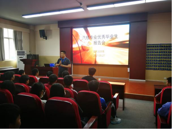 此次報告會由汽修教研室主任趙鴻主持,現(xiàn)代服務(wù)系黨支部書記、系主任王楠及在校學(xué)生代表參加,邀請了現(xiàn)任西安遠(yuǎn)正汽車服務(wù)公司采購經(jīng)理的2017屆預(yù)備技師畢業(yè)生劉凱主講。劉凱同學(xué)從在校學(xué)習(xí)專業(yè)知識和技能的重要性,以及就讀預(yù)備技師對自己帶來的提高和收獲等方面,向同學(xué)們做了詳細(xì)匯報。讓在校學(xué)生對自己以后的專業(yè)發(fā)展有了清晰的認(rèn)識,同時對預(yù)備技師有了更深刻的認(rèn)識。