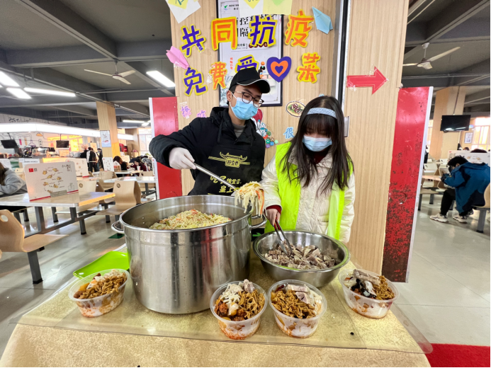“雖然是免費(fèi)供應(yīng)給學(xué)生,但我們依舊做的很用心,就是希望通過(guò)我們小小的舉動(dòng),讓學(xué)生感受到學(xué)校的貼心服務(wù),讓此次免費(fèi)菜活動(dòng)得到廣大師生的認(rèn)可與好評(píng)。” 食堂一樓負(fù)責(zé)人說(shuō)到。
