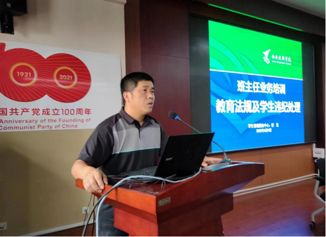 本次培訓(xùn)由兩部分內(nèi)容組成,第一部分培訓(xùn)由學(xué)管中心主任崔嵬主講。崔主任以“教育法規(guī)及學(xué)生違紀(jì)制度、應(yīng)急處置流程”為主題,重點(diǎn)對(duì)我院學(xué)生基本情況、教育法規(guī)、學(xué)生獎(jiǎng)懲管理辦法、校園各類應(yīng)急處置流程進(jìn)行了詳細(xì)解讀。他強(qiáng)調(diào)學(xué)生管理工作是學(xué)院的中心工作,班主任老師、副班主任是學(xué)生管理隊(duì)伍的重要組成部分,是學(xué)生管理工作的骨干力量,副班主任要協(xié)助班主任一起做好班級(jí)學(xué)生管理,共同促進(jìn)學(xué)生發(fā)展。