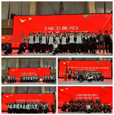 比賽在27WG電氣1班演唱的《保衛(wèi)黃河》大合唱中拉開序幕,各系參賽隊依次上場,師生們用一首首經(jīng)典的紅色旋律,深情表達對黨、對祖國和人民的熱愛。