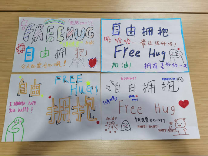 網(wǎng)絡(luò)將人們的社交圈子無(wú)限放大,我們也成為了低頭族,忘記了和周?chē)说慕涣??!白杂蓳肀А杯h(huán)節(jié)在學(xué)院公共區(qū)域內(nèi)開(kāi)展,從最開(kāi)始由志愿者對(duì)路過(guò)的同學(xué)們送上一個(gè)大大的擁抱,到后來(lái)學(xué)生之間主動(dòng)的相互擁抱,真誠(chéng)的笑容在每一個(gè)人臉上綻放。“自由擁抱”,讓大家放下自己的面具與疲憊,放開(kāi)自己的心去與陌生人相擁,不但釋放了自己也同樣溫暖了他人。
