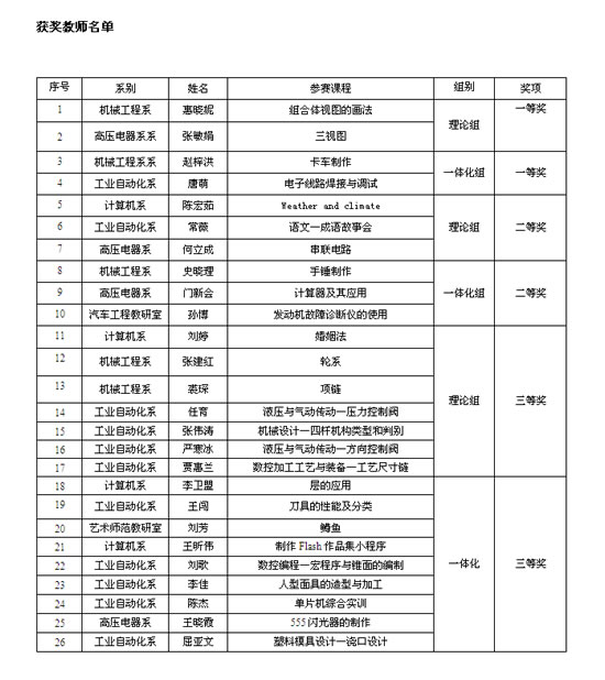 西安技師學(xué)院2011年課堂教學(xué)競(jìng)賽獲獎(jiǎng)名單