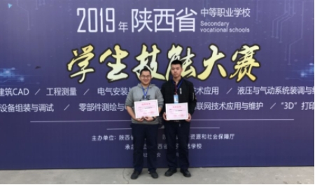 劉兆陽、胡佳豪,2019年獲陜西省中等職業(yè)院校技能大賽“機(jī)電一體化設(shè)備組裝與調(diào)試”項(xiàng)目二等獎。